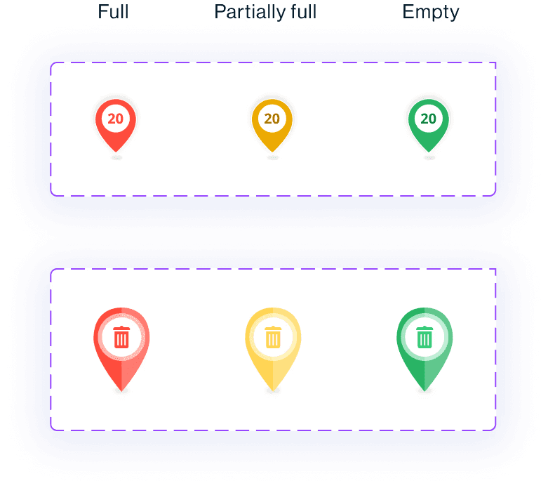 The bin icon was replaced by a number indicating the pick-up order for each bin.